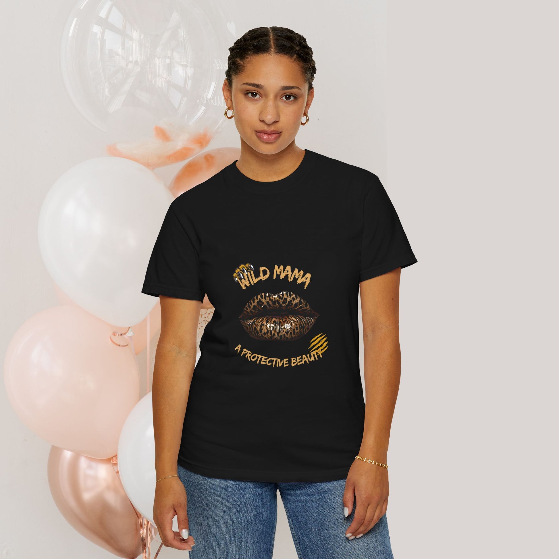 A Mother's Day t-shirt designed for women who appreciate animal prints. This unisex garment-dyed T-shirt offers a relaxed fit, making it perfect for casual or semi-formal occasions. Ideal for adults looking for a comfortable and stylish tee to wear on Mother's Day.