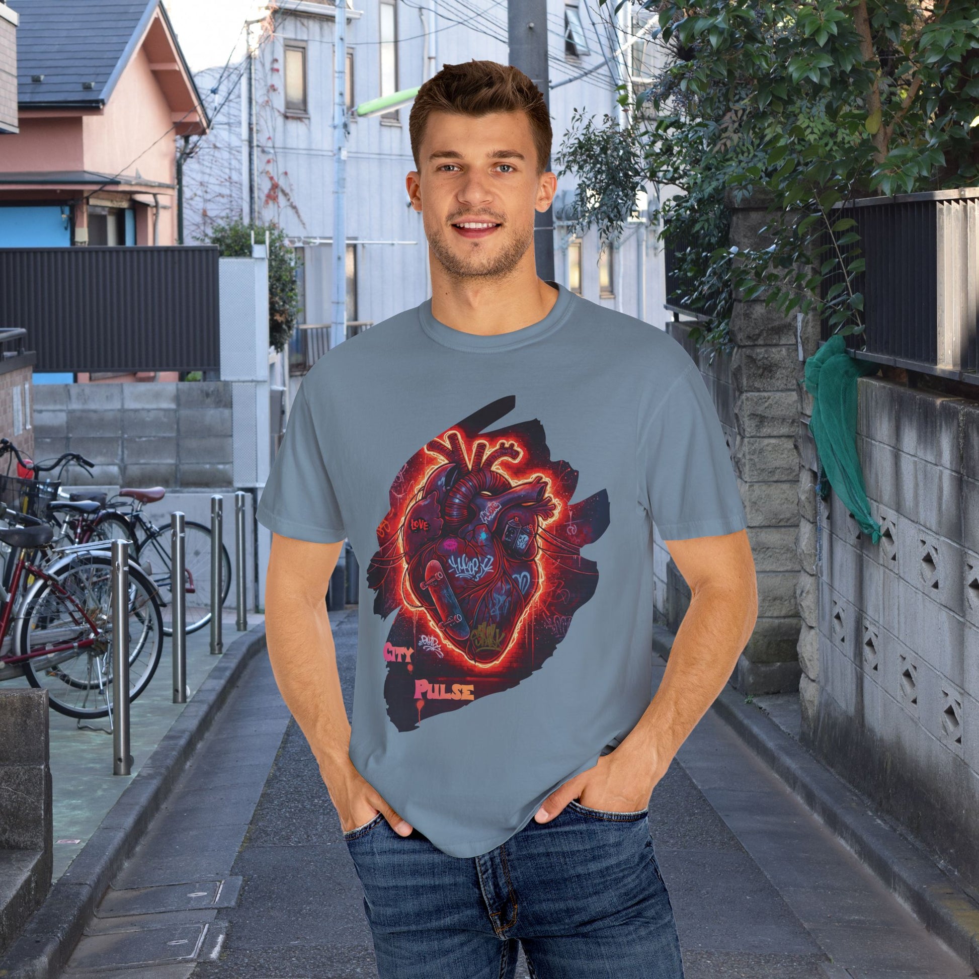 This relaxed-fit garment carries the city with it — a soft, garment-dyed tee that feels like a well-worn favorite from the first wear. The muted tones and lived-in texture mirror the pulse of downtown streets, late-night neon, and early-morning coffee runs. Wear it while you wander alleyways, ride a crowded subway, or sketch the skyline from a rooftop. The shirt sits comfortably on a range of body shapes and layers easily under a jacket or over a long-sleeve for cooler evenings. It’s made and dyed to age gracefully, so the color and feel evolve with your stories of urban life.