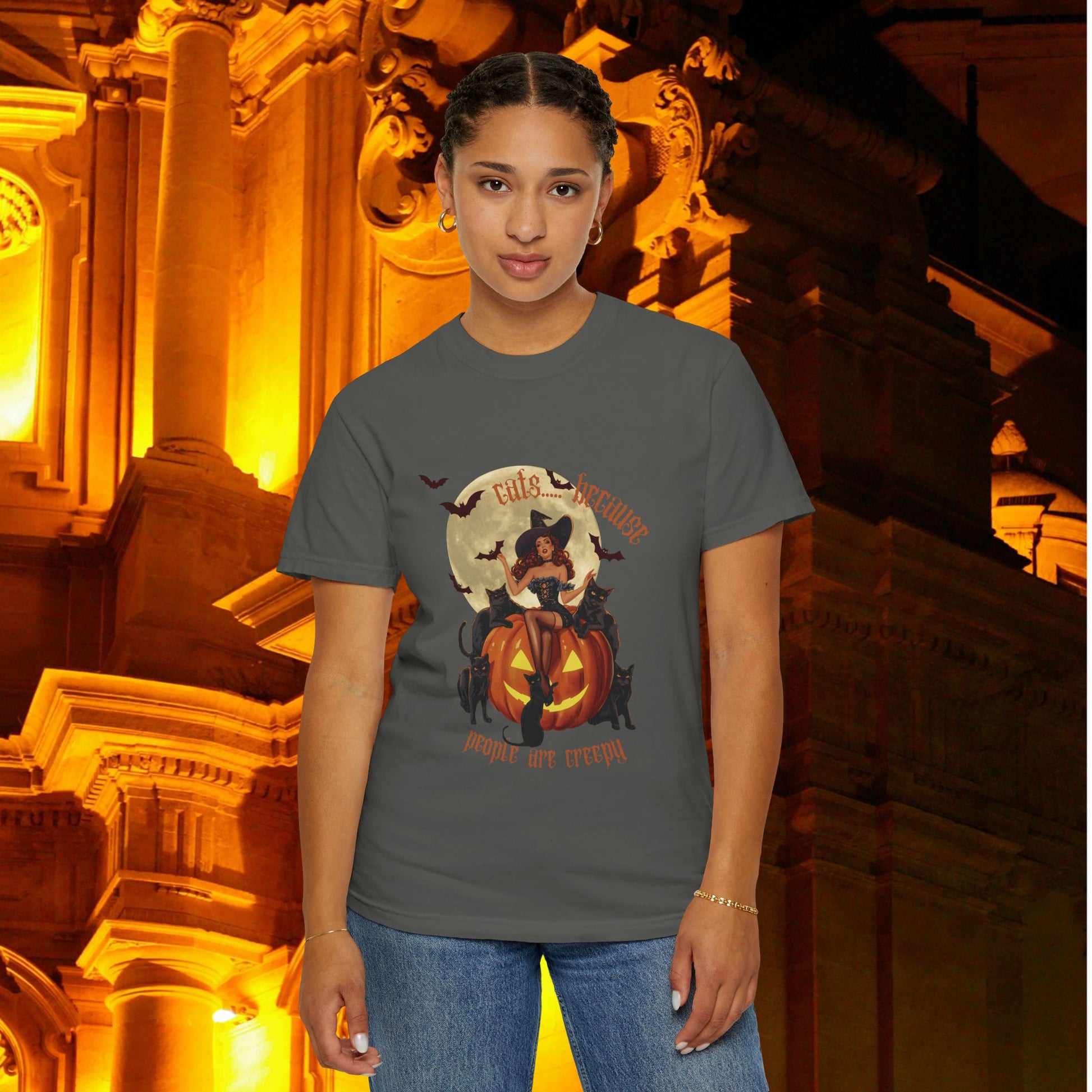 Witchy T-shirt with Cats Because People Are Creepy Phrase